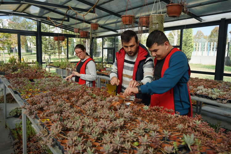 Konya Selçuklu’da otizmliler sukulentleri sevgiyle yetiştiriyor